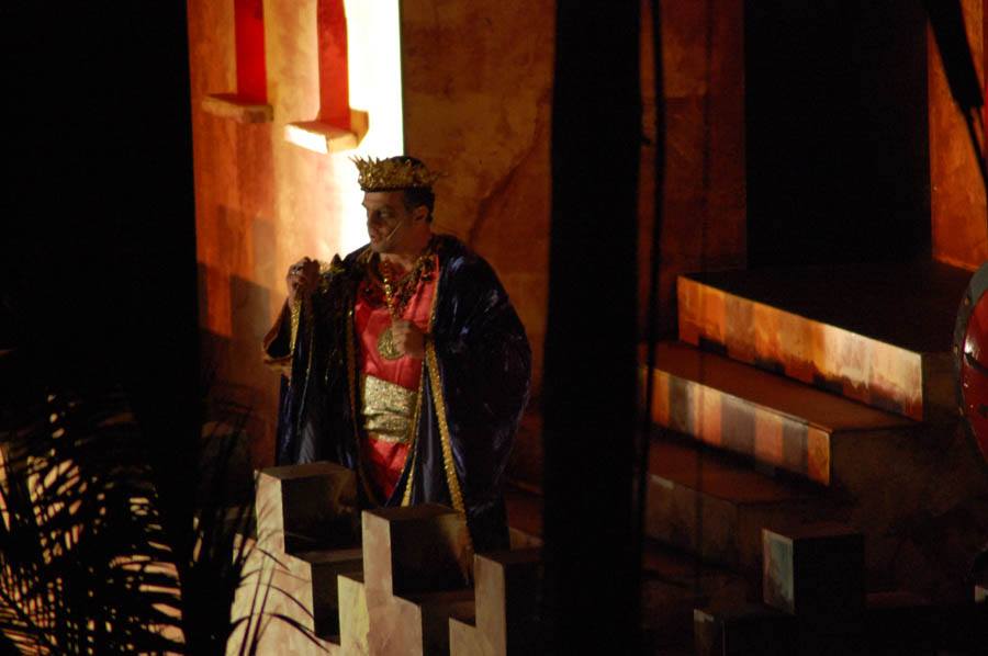 La colocación de los elementos escénicos y vestuario de los actores se ha ido modificando y mejorando hasta conseguir el maravilloso escenario actual, que ocupa algo menos de 100 metros lineales, donde destacan la carpa, el desierto, el castillo de Herodes y el pesebre, todos de una belleza inigualable.