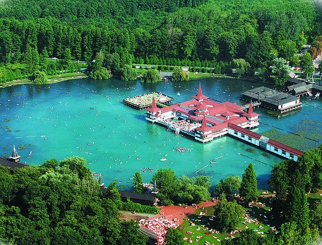 A poca distancia del Balaton se encuentra Hévíz con su lago termal más grande de Europa  (47.000 m2). Donde las aguas calientes surgen de una profundidad de 45 metros, llegando a la superficie con una temperatura de 35 grados. Las aguas del lago se renuevan cada 28 horas y su contenido alto de sulfuro y minero-medicionales hacen ser muy beneficiosas para problemas musculares y artrosis.
